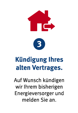 Bei einem Lieferantenwechsel muss der bestehende Vertrag mit Ihrem alten Energieversorger gekündigt werden. Das übernehmen wir für Sie! Nennen Sie uns dazu bitte den Namen des bisherigen Versorgers und das Datum, zu dem Sie den Lieferantenwechsel wünschen (frühestens 10 Werktage in die Zukunft). Informieren Sie uns, wenn der Vertrag unter einem anderen Namen läuft. Wenn Sie den Vertrag bereits selbst gekündigt haben, vermerken Sie bitte das Datum, zu dem wir die Belieferung anmelden können.